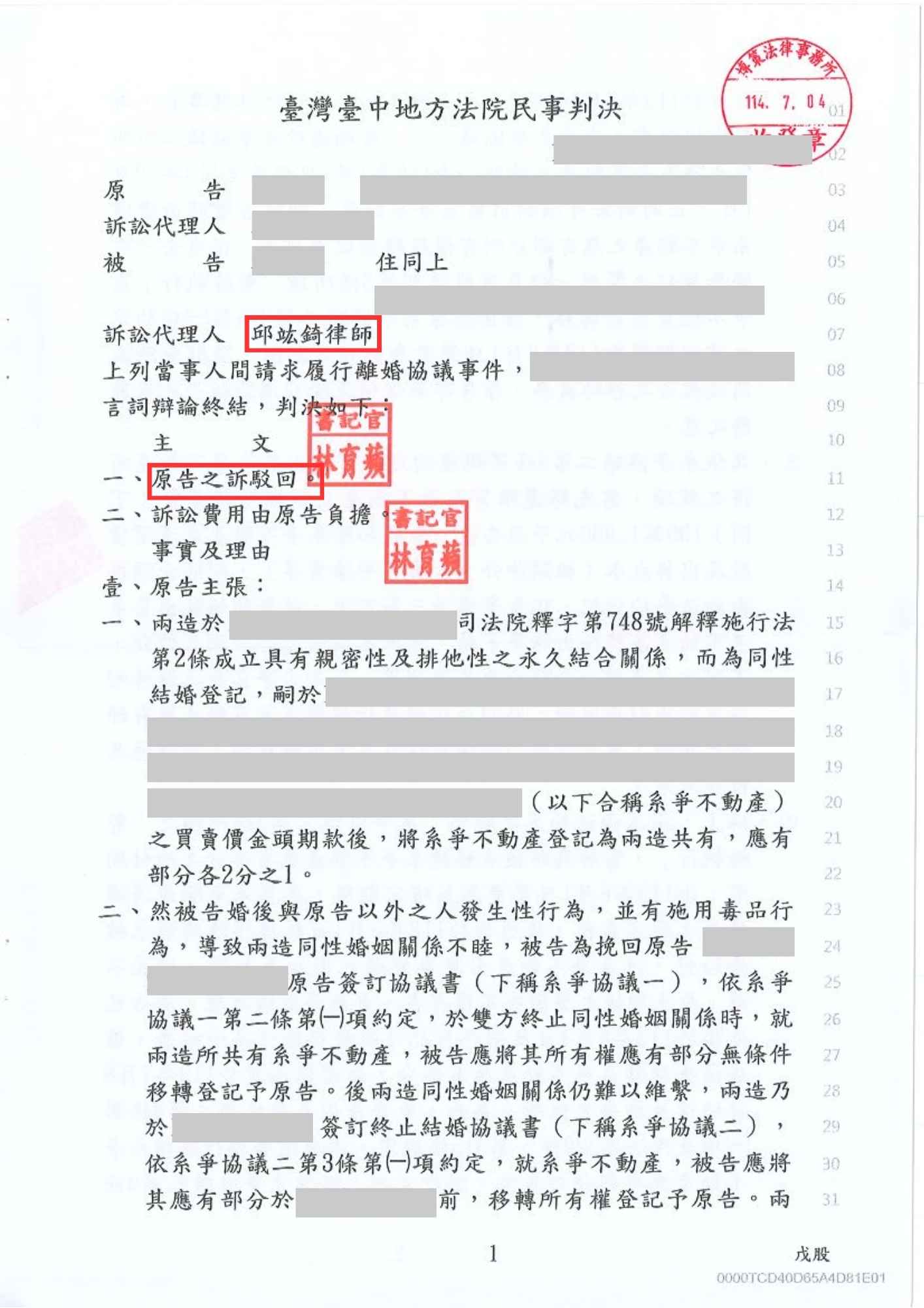 邱竑錡律師離婚勝訴,對方證據不足被駁回-訴研