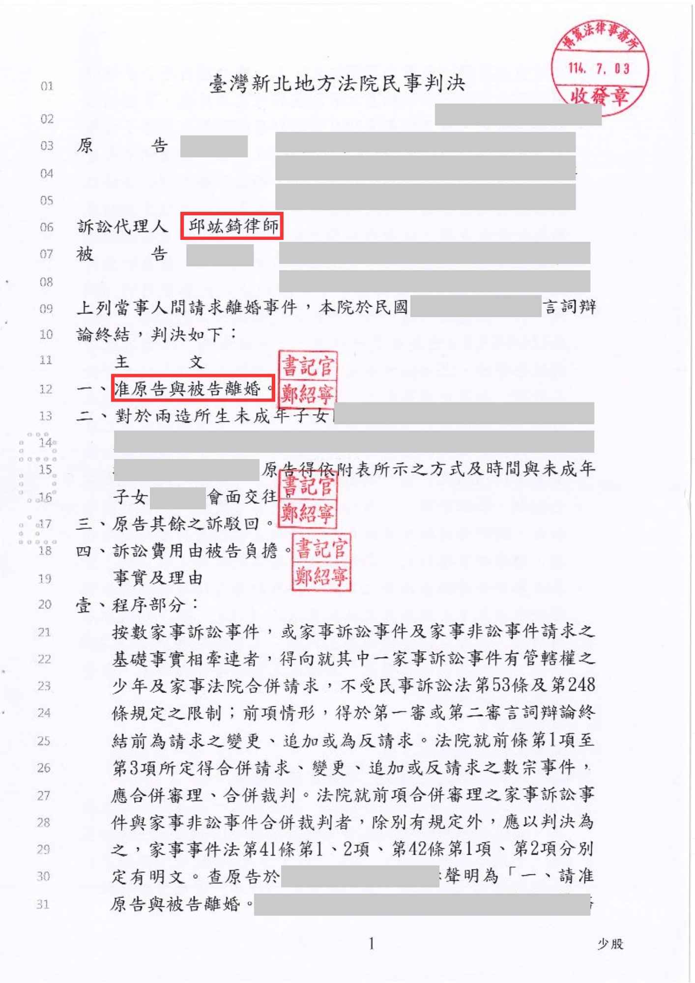 邱竑錡律師離婚勝訴,爭取探視成功-訴研