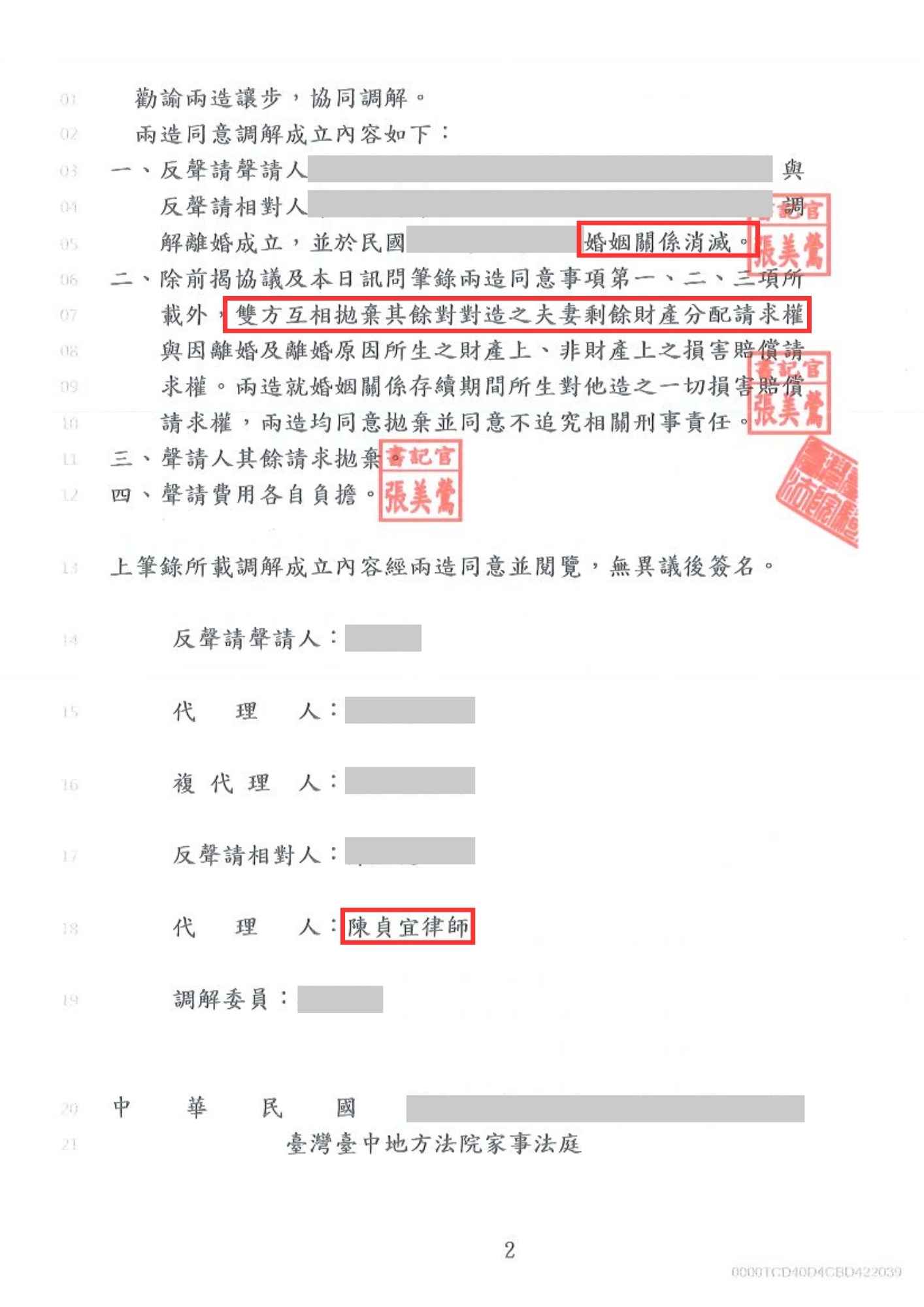 陳貞宜律師離婚調解成功,雙方放棄剩餘財產請求權-訴研