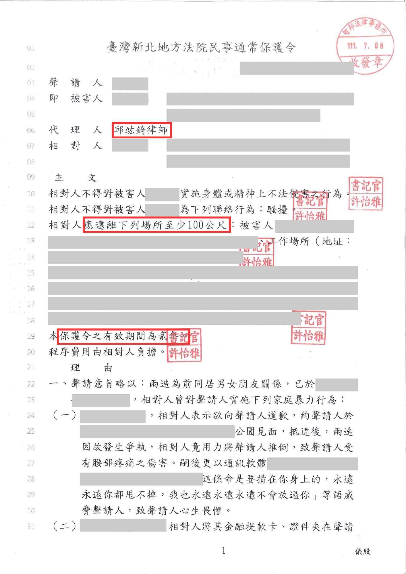 邱竑錡律師訴訟,成功聲請通常保護令-訴研